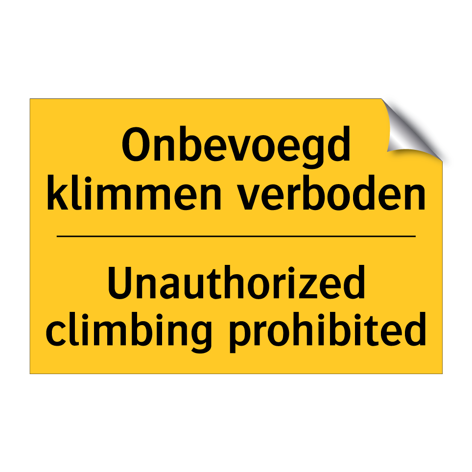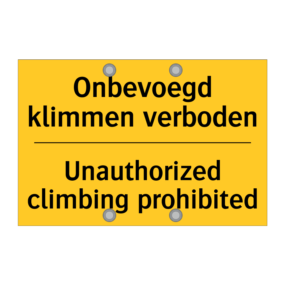 Waarschuwingsbord met de tekst Onbevoegd klimmen verboden / Unauthorized climbing prohibited