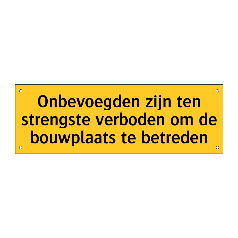 Waarschuwingsbord met de tekst Onbevoegden zijn ten strengste verboden om de bouwplaats te betreden