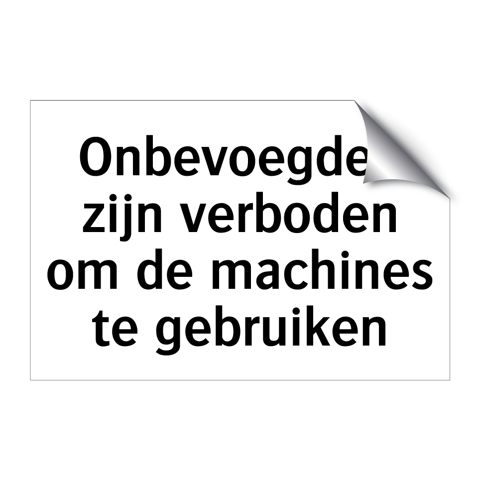 Verbodsbord met de tekst Onbevoegden zijn verboden om de machines te gebruiken