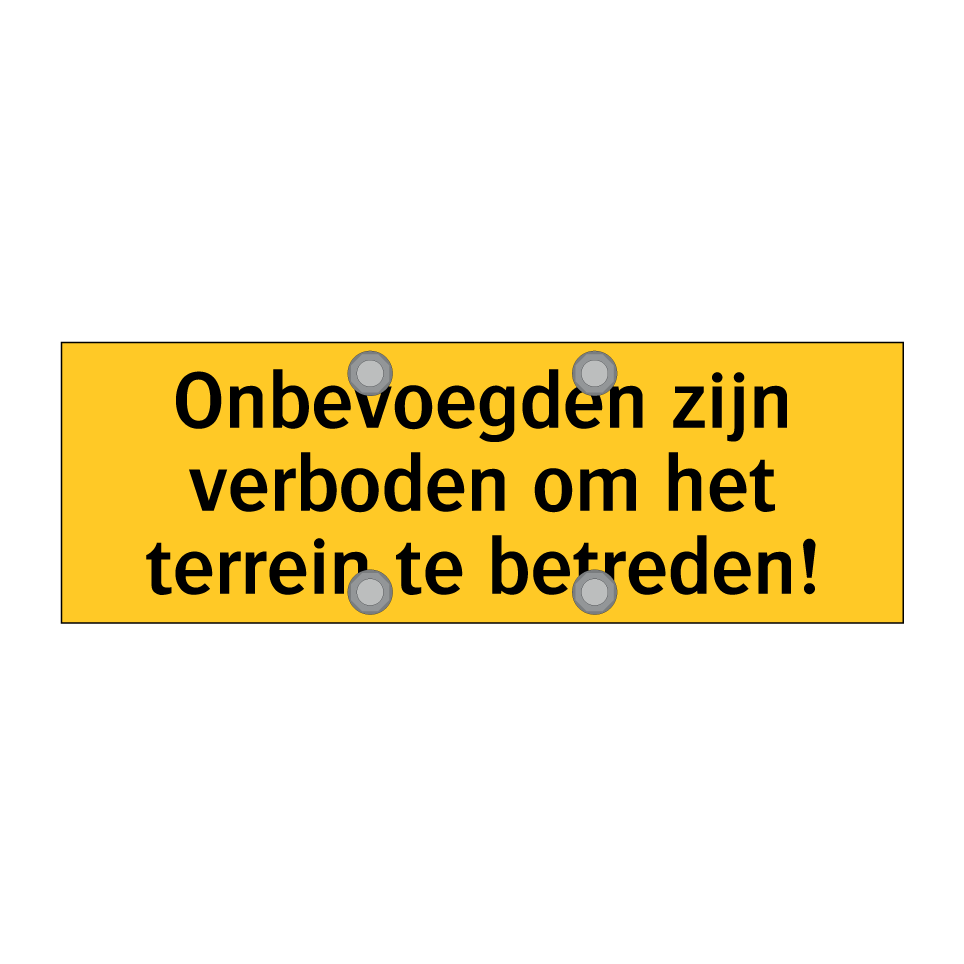 Deze waarschuwingsbord is essentieel voor het beveiligen van uw terrein. Het waarschuwt onbevoegden dat toegang verboden is, wat helpt om ongewenste bezoekers buiten te houden. Plaats deze bord bij ingangen, hekken, poorten of andere toegangswegen om duidelijk te maken dat het terrein niet vrij toegankelijk is. Ideaal voor bouwplaatsen, bedrijfsterreinen, privé-eigendommen en andere gebieden waar veiligheid en privacy van groot belang zijn. Met zijn opvallende gele achtergrond en zwarte tekst trekt deze waarschuwingsbord onmiddellijk de aandacht, waardoor de boodschap niet te missen is. Zorg voor een veilige omgeving door deze waarschuwingsbord strategisch te plaatsen.