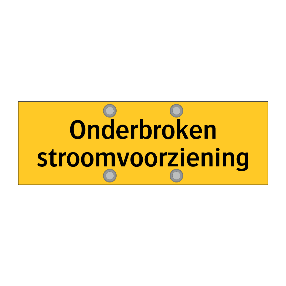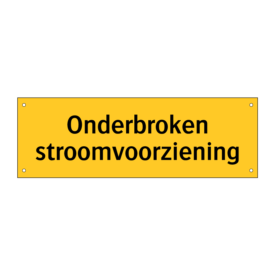 Waarschuwingsbord met de tekst Onderbroken stroomvoorziening