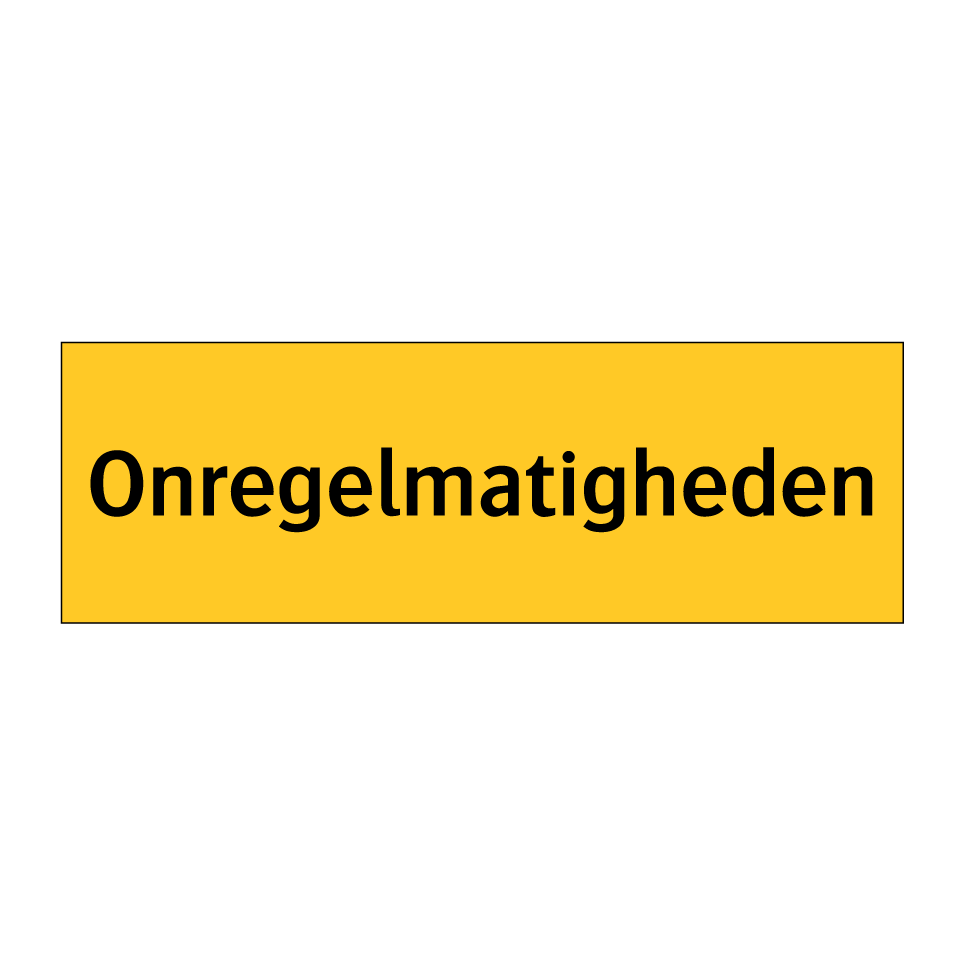 Waarschuwingsbord met de tekst Onregelmatigheden