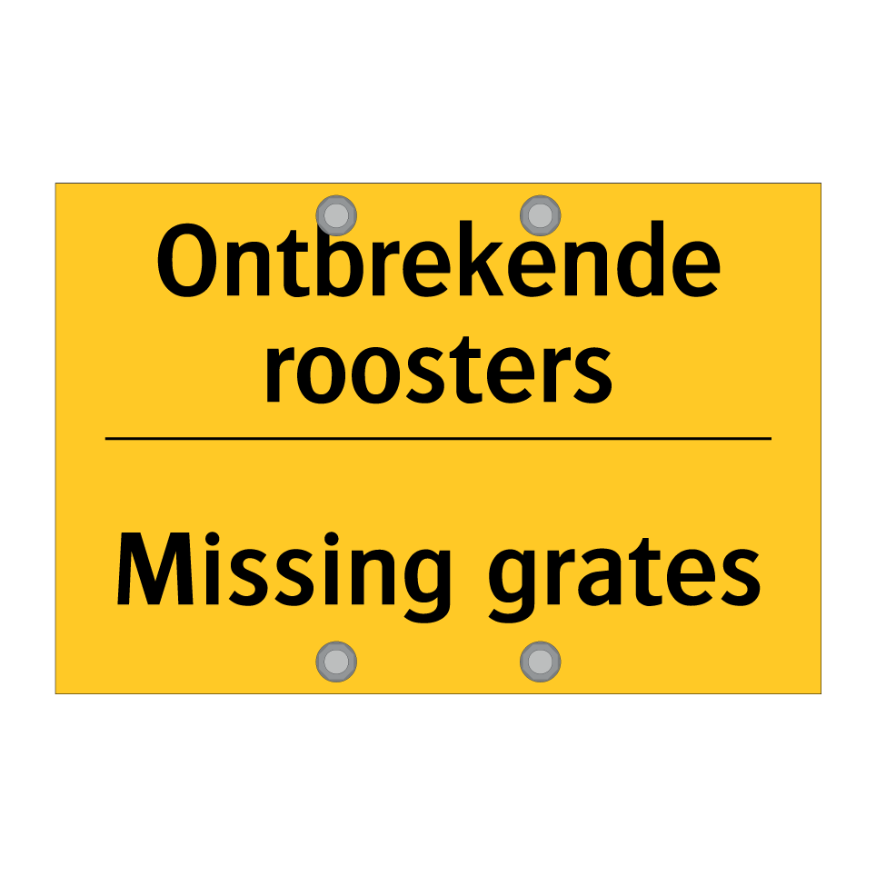Waarschuwingsbord met de tekst Ontbrekende roosters / Missing grates