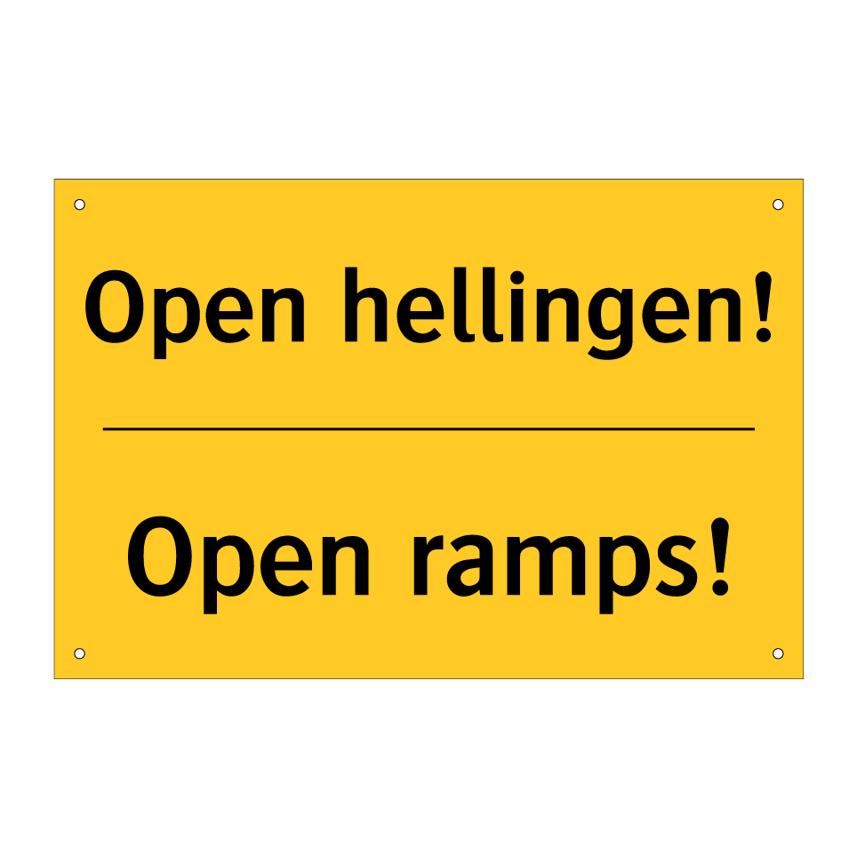Waarschuwingsbord met de tekst Open hellingen! / Open ramps!