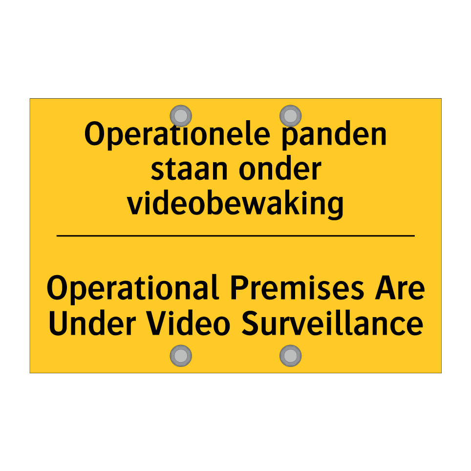 Waarschuwingsbord met de tekst Operationele panden staan onder videobewaking / Operational Premises Are Under Video Surveillance