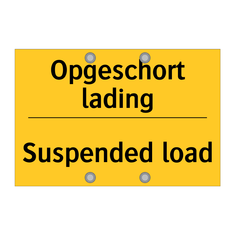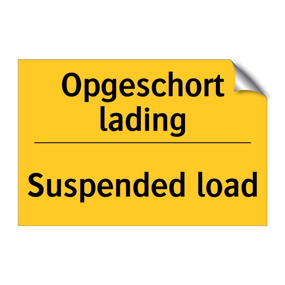 Waarschuwingsbord met de tekst Opgeschort lading / Suspended load