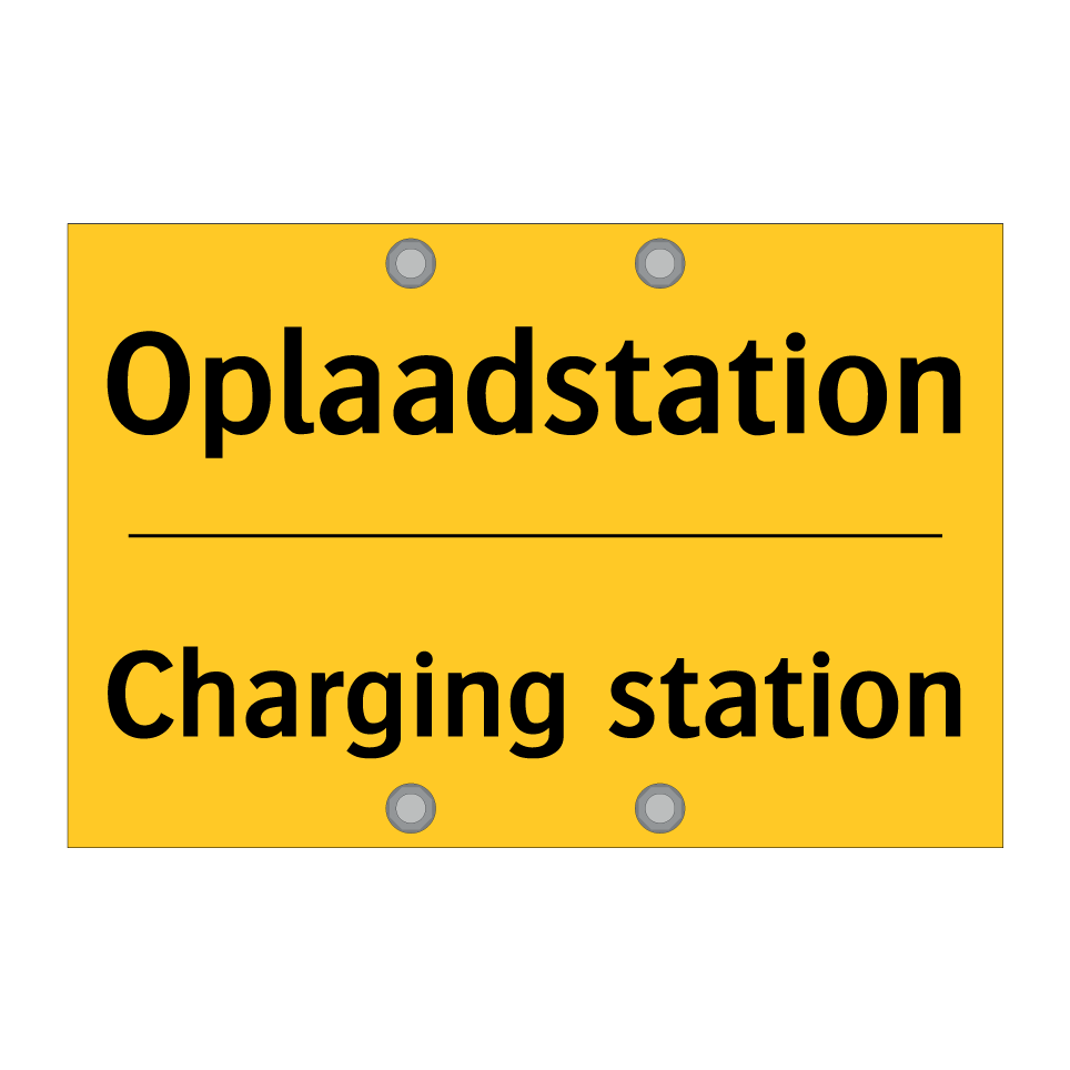 Waarschuwingsbord met de tekst Oplaadstation / Charging station