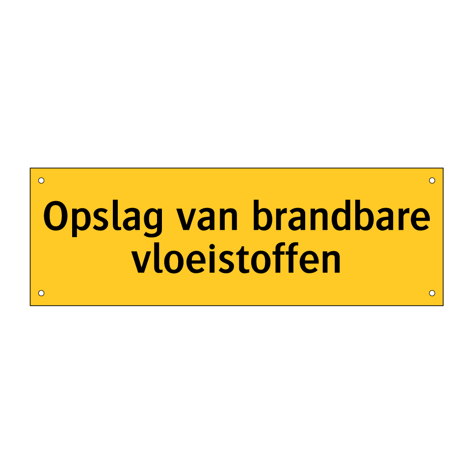 Waarschuwingsbord met de tekst Opslag van brandbare vloeistoffen