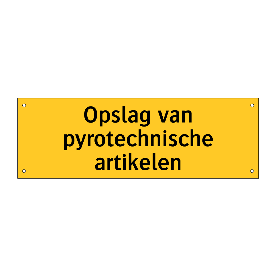 Waarschuwingsbord met de tekst Opslag van pyrotechnische artikelen