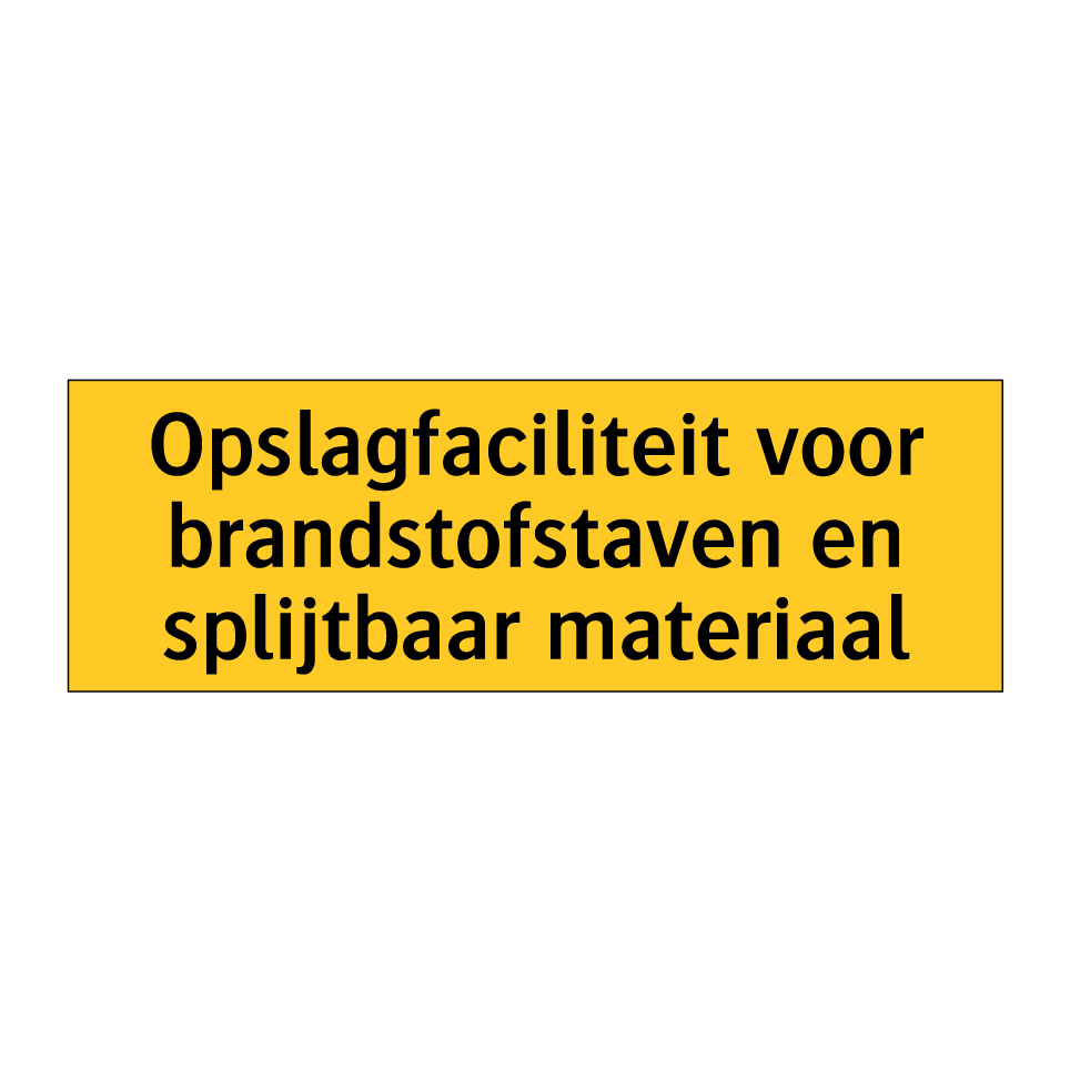 Waarschuwingsbord met de tekst Opslagfaciliteit voor brandstofstaven en splijtbaar materiaal