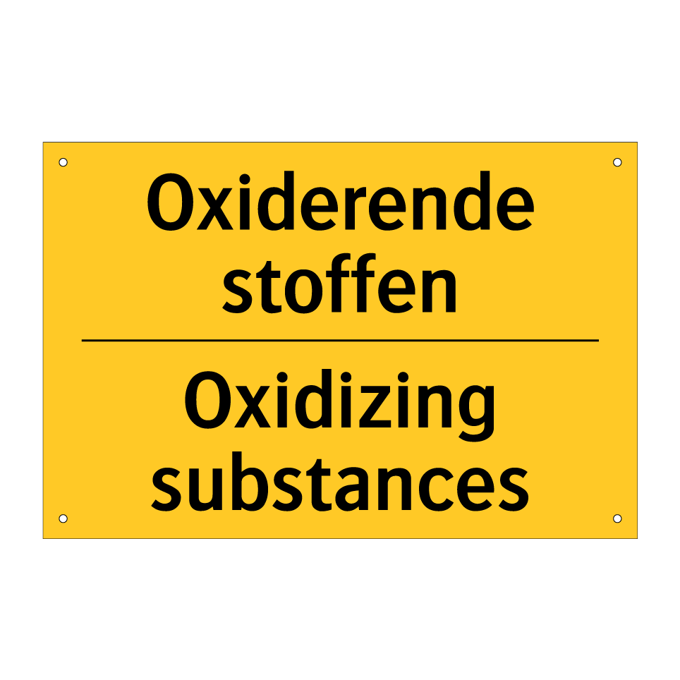 Waarschuwingsbord met de tekst Oxiderende stoffen / Oxidizing substances