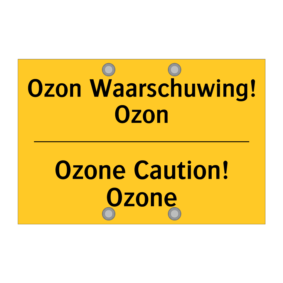 Waarschuwingsbord met de tekst Ozon Waarschuwing! Ozon / Ozone Caution! Ozone