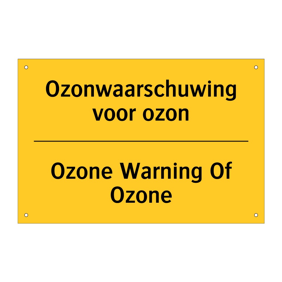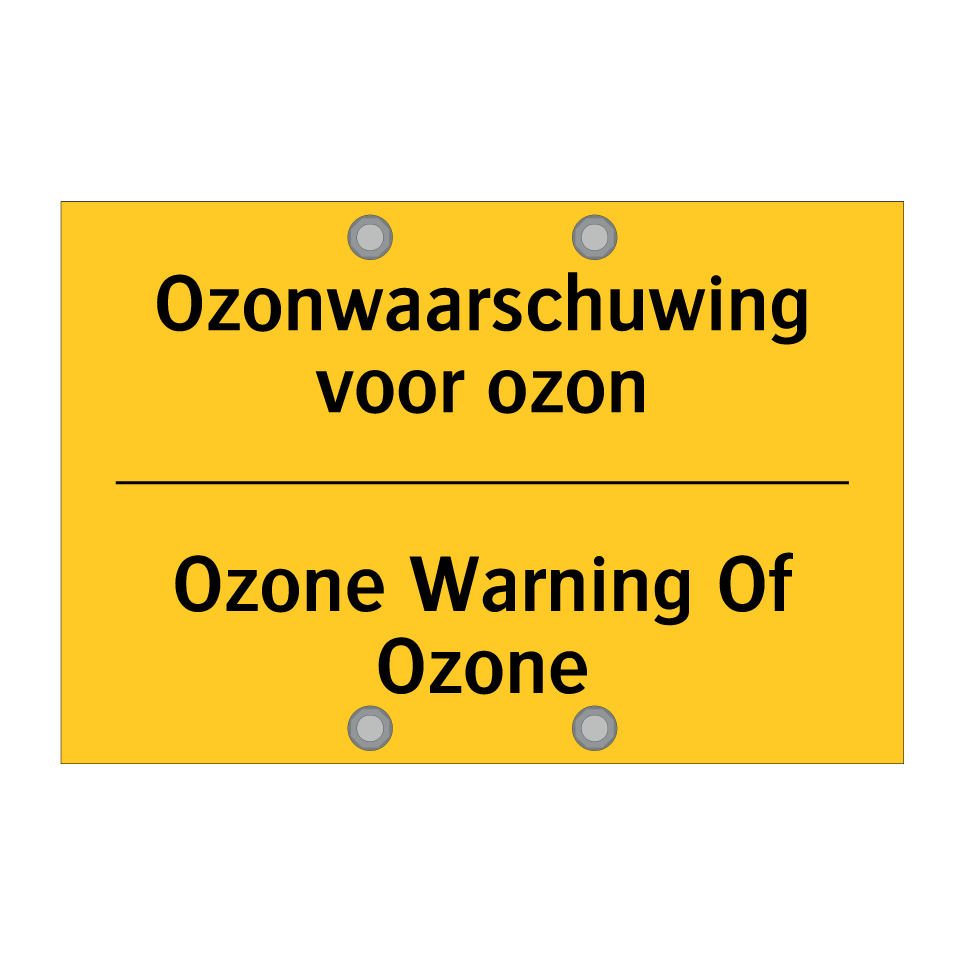 Waarschuwingsbord met de tekst Ozonwaarschuwing voor ozon / Ozone Warning Of Ozone