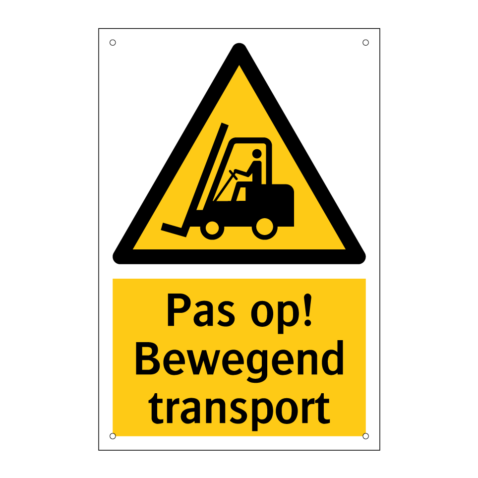 Deze waarschuwingsbord is essentieel voor het waarborgen van de veiligheid in omgevingen waar transportvoertuigen actief zijn. Plaats deze bord op strategische locaties zoals magazijnen, fabrieken, laadperrons en distributiecentra om personeel te waarschuwen voor bewegende voertuigen. Door deze waarschuwingsbord te gebruiken, kunnen ongelukken en verwondingen worden voorkomen. Het is ideaal voor gebruik in drukke industriële omgevingen waar heftrucks, vrachtwagens of andere transportmiddelen regelmatig in beweging zijn. Zorg ervoor dat iedereen op de hoogte is van de potentiële gevaren door deze duidelijke en opvallende waarschuwingsbord te installeren.
