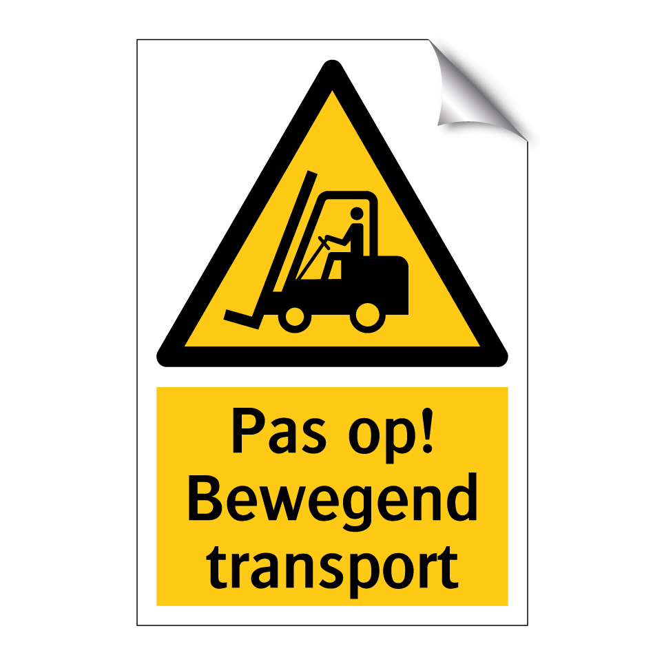 Waarschuwingsbord met de tekst Pas op! Bewegend transport