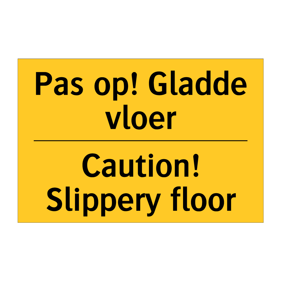 Deze opvallende waarschuwingsbord met gele achtergrond en zwarte tekst is ideaal voor het markeren van gladde vloeren. De tweetalige tekst in zowel Nederlands als Engels zorgt ervoor dat zowel lokale als internationale bezoekers de waarschuwing begrijpen. dit bordje is perfect voor gebruik in openbare ruimtes zoals winkelcentra, kantoren, scholen en ziekenhuizen, waar veiligheid voorop staat. Door de duidelijke en goed zichtbare waarschuwing kunnen ongelukken en uitglijders effectief worden voorkomen. Plaats dit waarschuwingsbord op strategische locaties zoals ingangen, gangen en andere gebieden waar de vloer glad kan zijn.