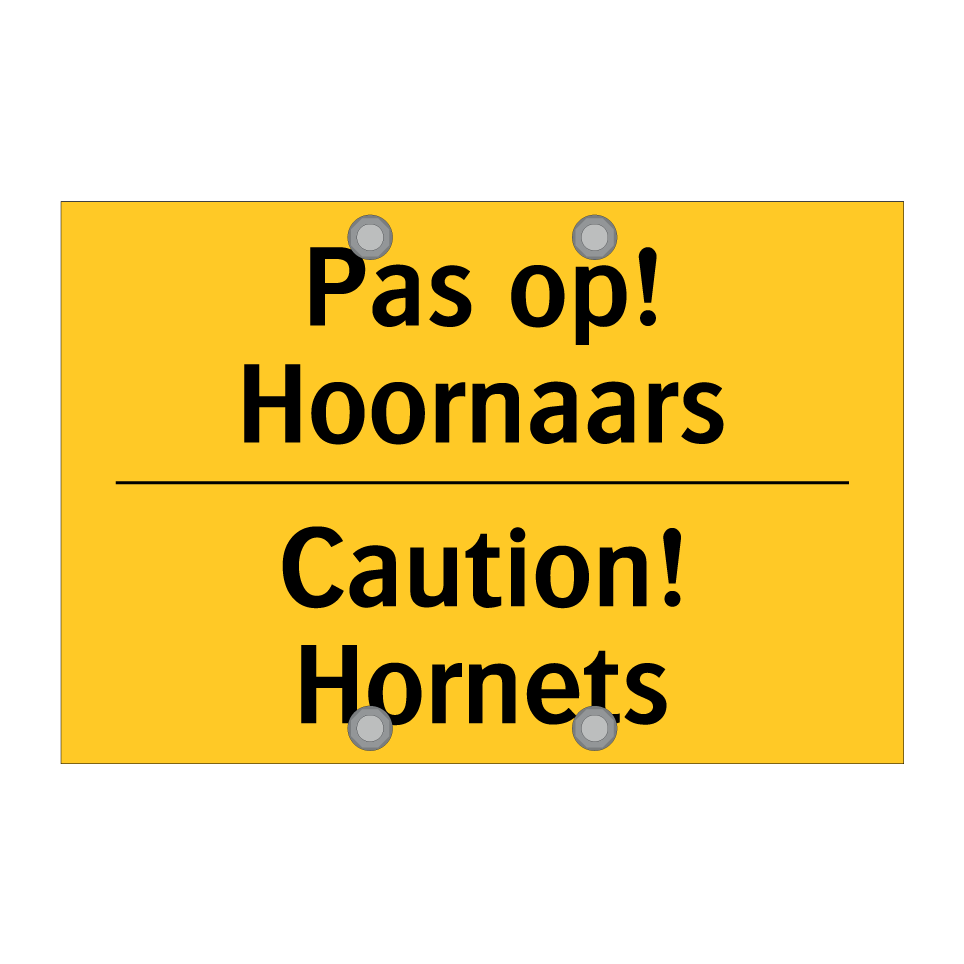 Waarschuwingsbord met de tekst Pas op! Hoornaars / Caution! Hornets