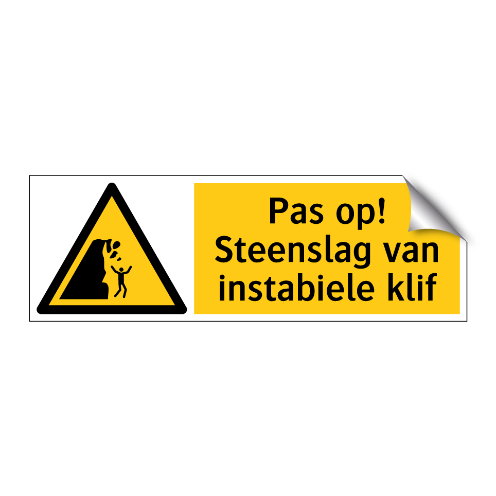 Waarschuwingsbord met de tekst Pas op! Steenslag van instabiele klif