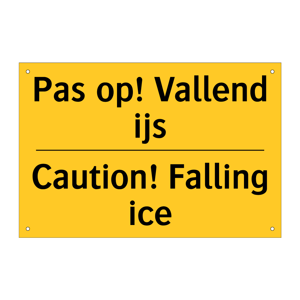 Waarschuwingsbord met de tekst Pas op! Vallend ijs / Caution! Falling ice