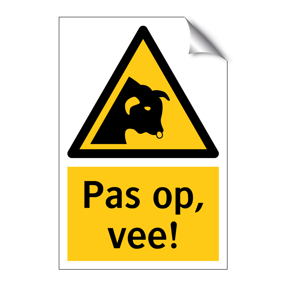 Waarschuwingsbord met de tekst Pas op, vee!