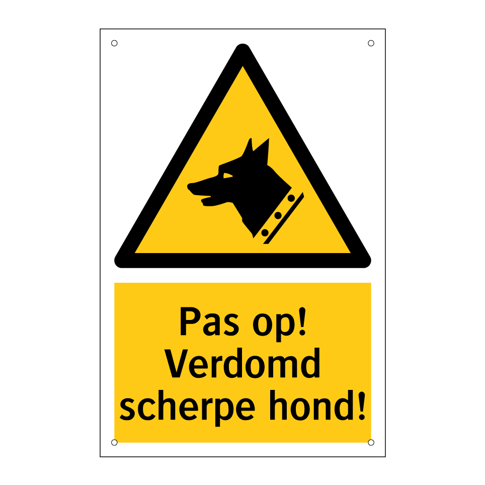 Waarschuwingsbord met de tekst Pas op! Verdomd scherpe hond!