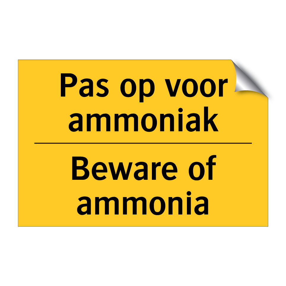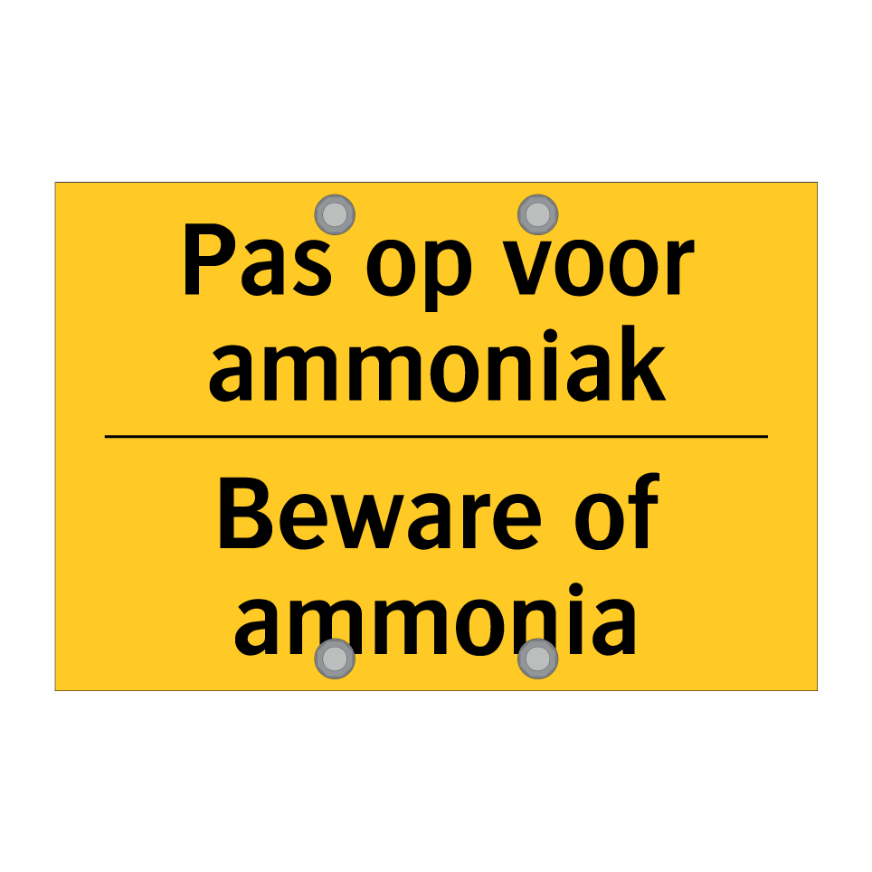 Waarschuwingsbord met de tekst Pas op voor ammoniak / Beware of ammonia