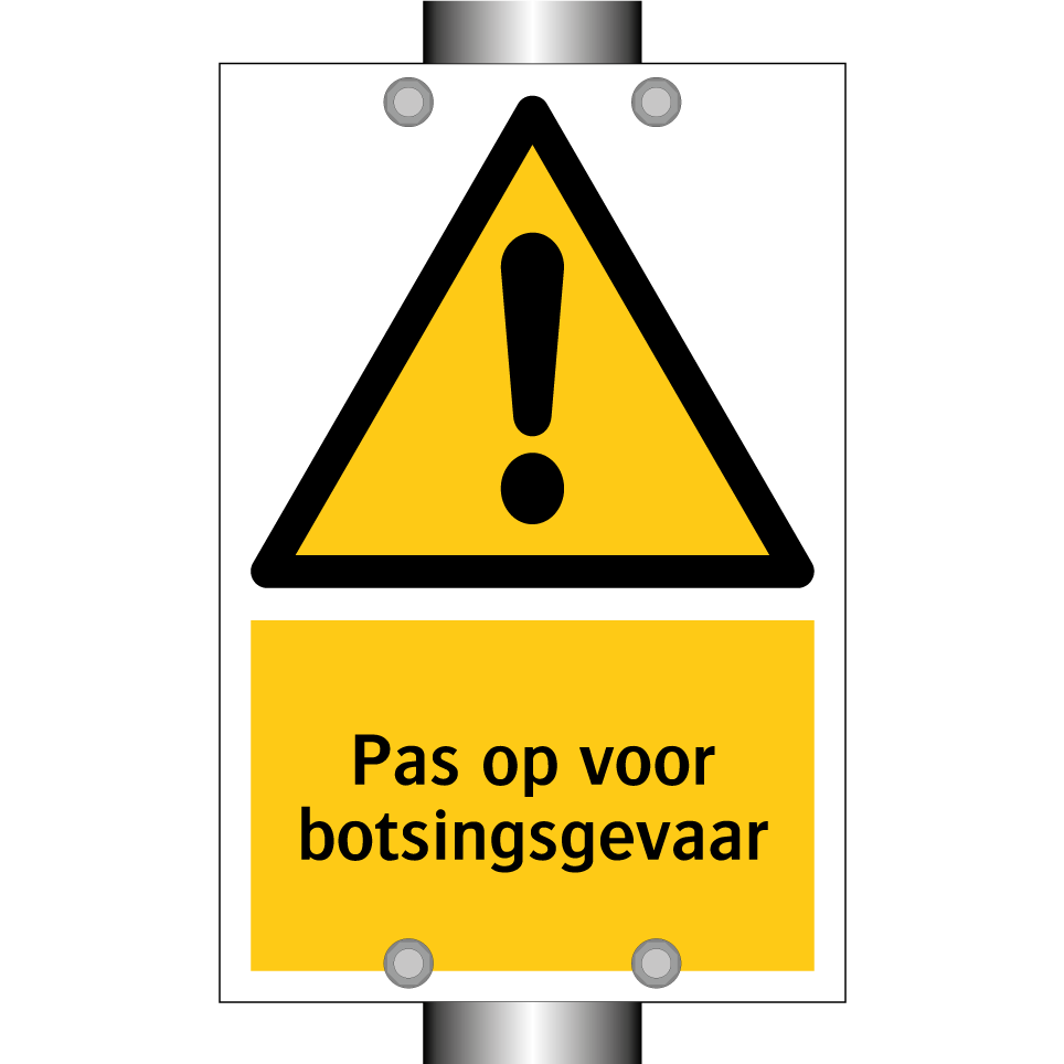 Waarschuwingsbord met de tekst Pas op voor botsingsgevaar
