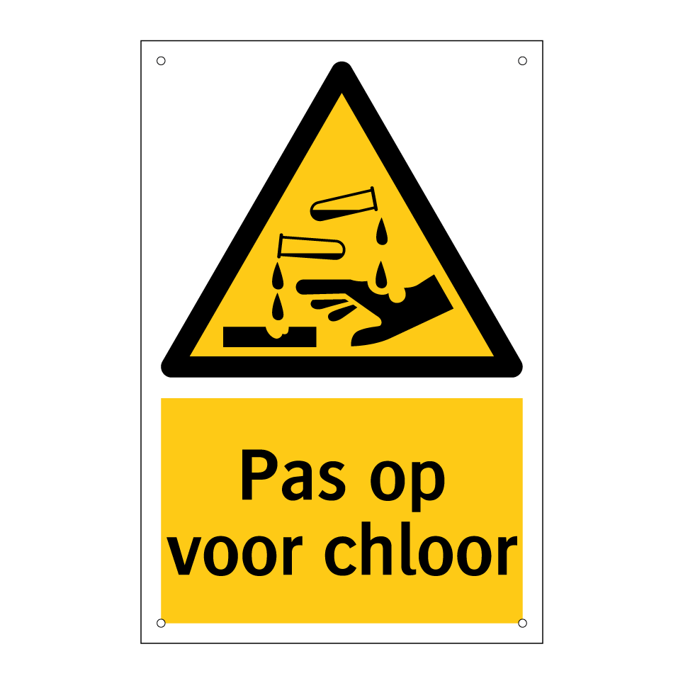 Waarschuwingsbord met de tekst Pas op voor chloor