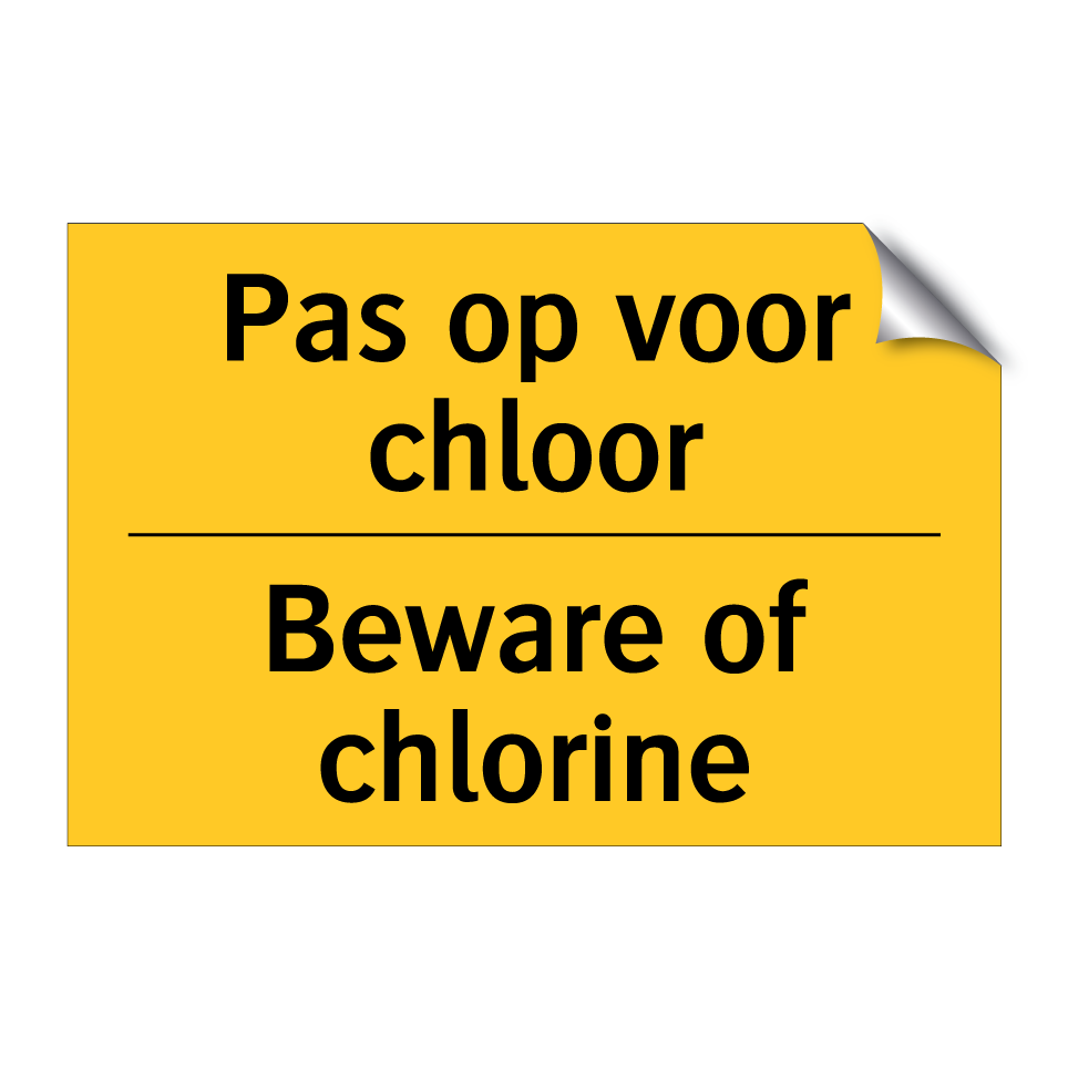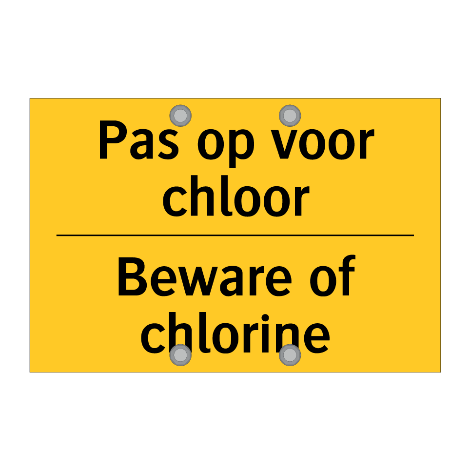 Waarschuwingsbord met de tekst Pas op voor chloor / Beware of chlorine