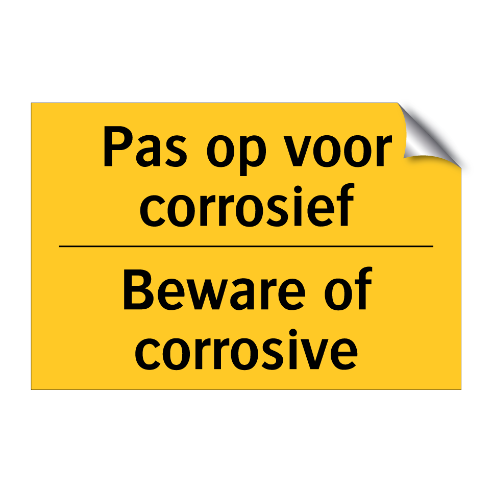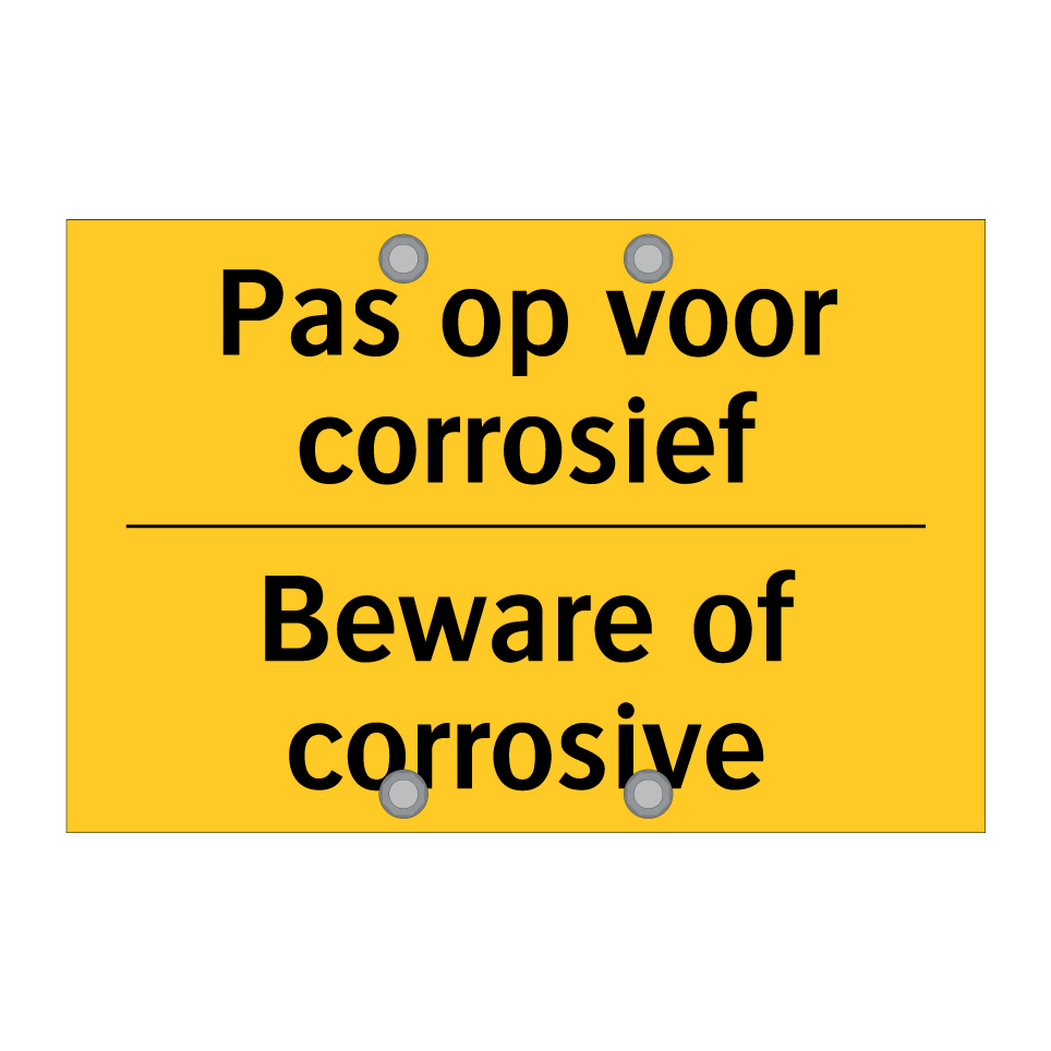 Waarschuwingsbord met de tekst Pas op voor corrosief / Beware of corrosive