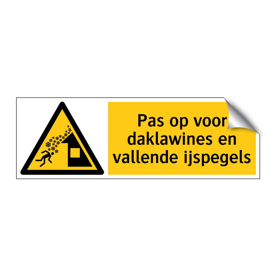 Waarschuwingsbord met de tekst Pas op voor daklawines en vallende ijspegels