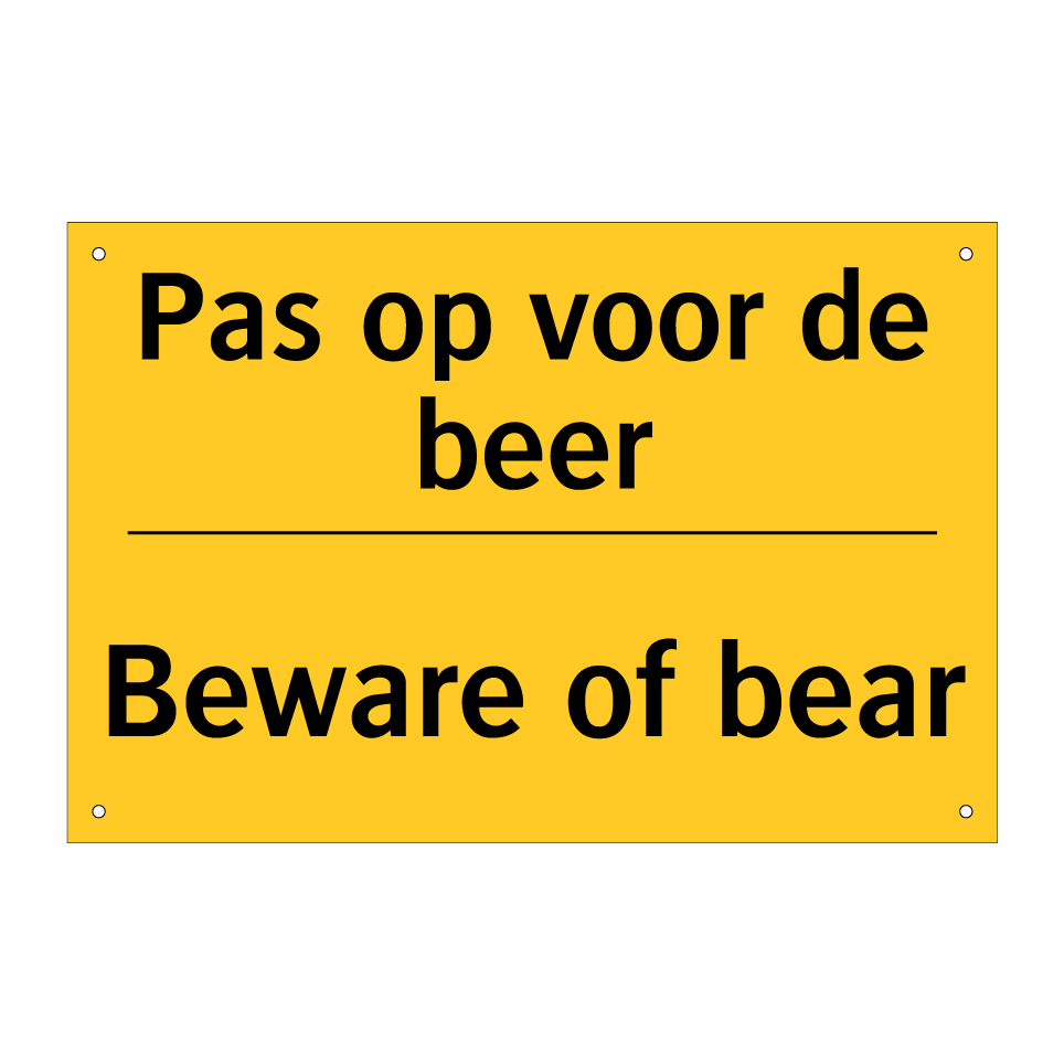 Waarschuwingsbord met de tekst Pas op voor de beer / Beware of bear