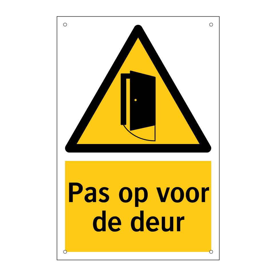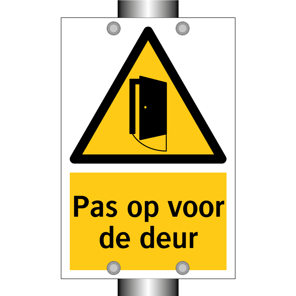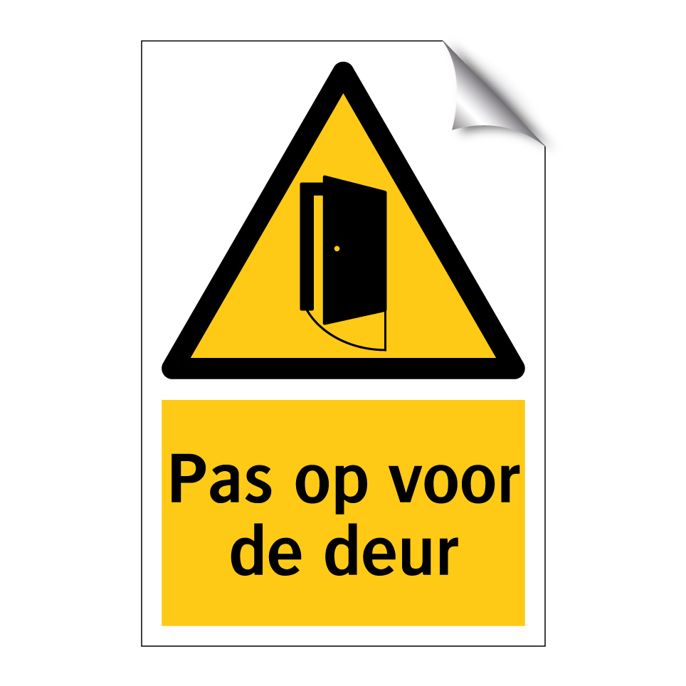 Waarschuwingsbord met de tekst Pas op voor de deur