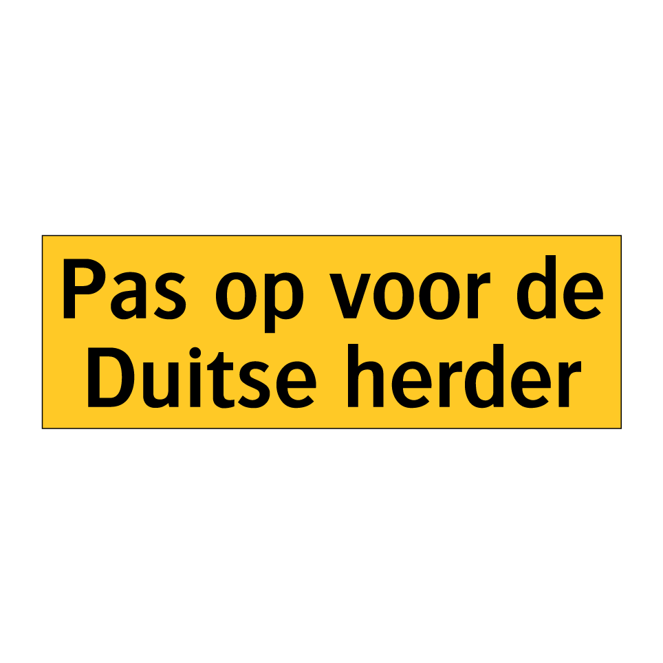 Waarschuwingsbord met de tekst Pas op voor de Duitse herder