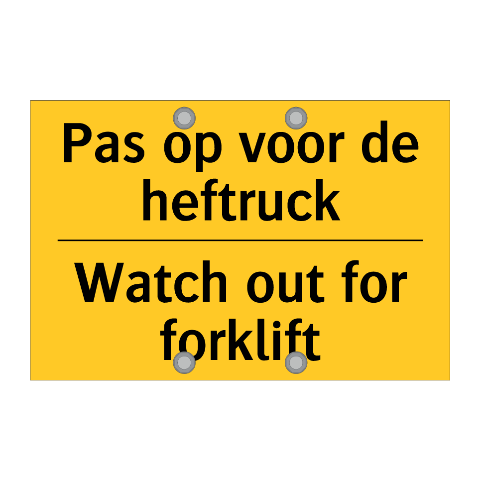 Waarschuwingsbord met de tekst Pas op voor de heftruck / Watch out for forklift