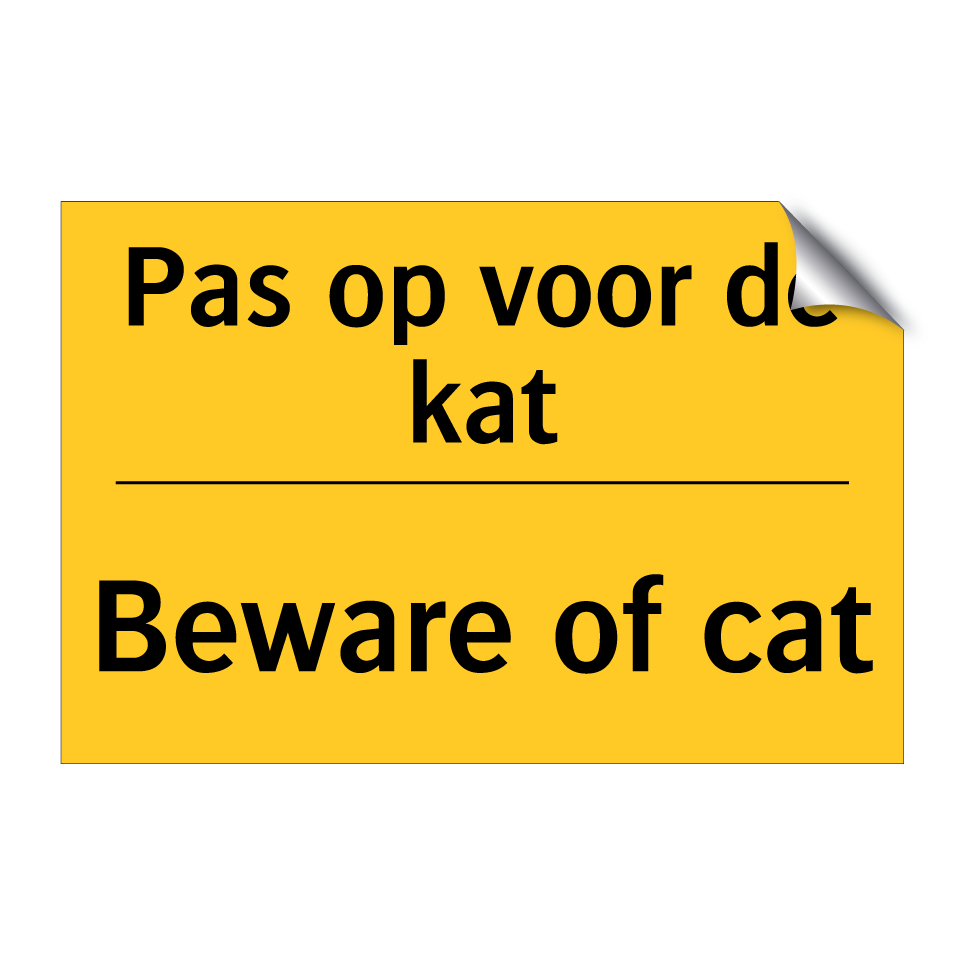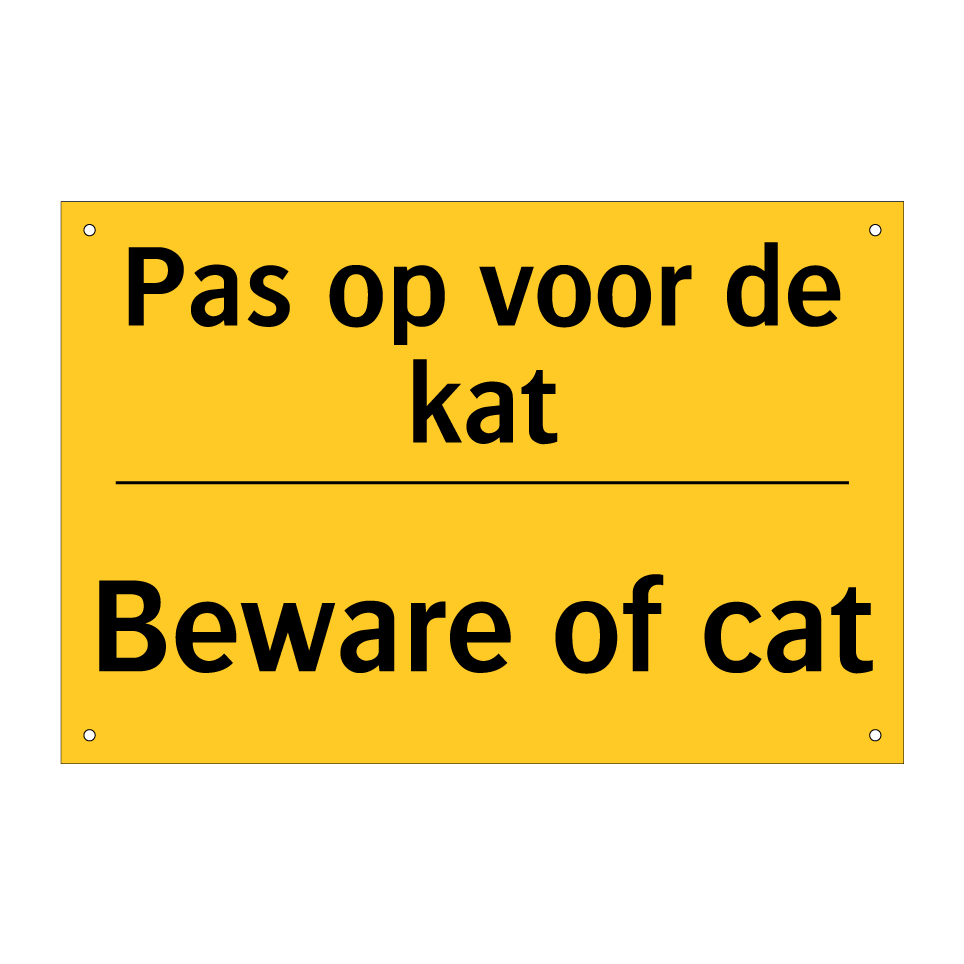 Waarschuwingsbord met de tekst Pas op voor de kat / Beware of cat
