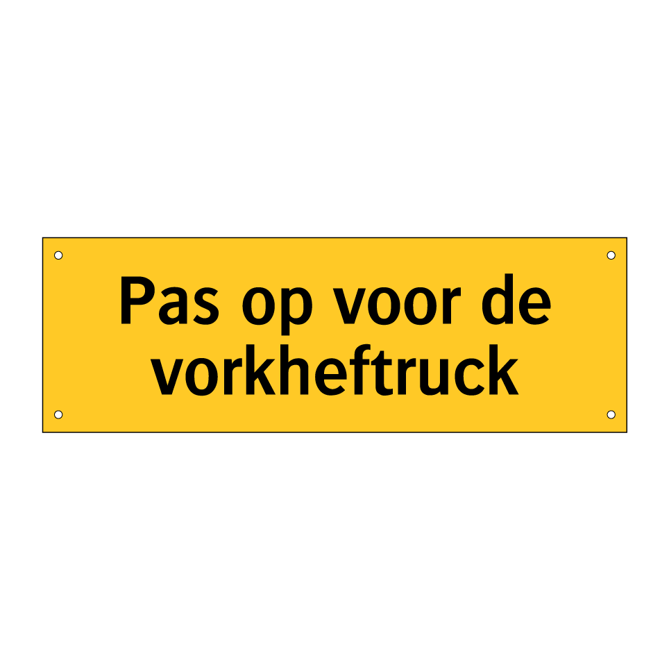 Waarschuwingsbord met de tekst Pas op voor de vorkheftruck