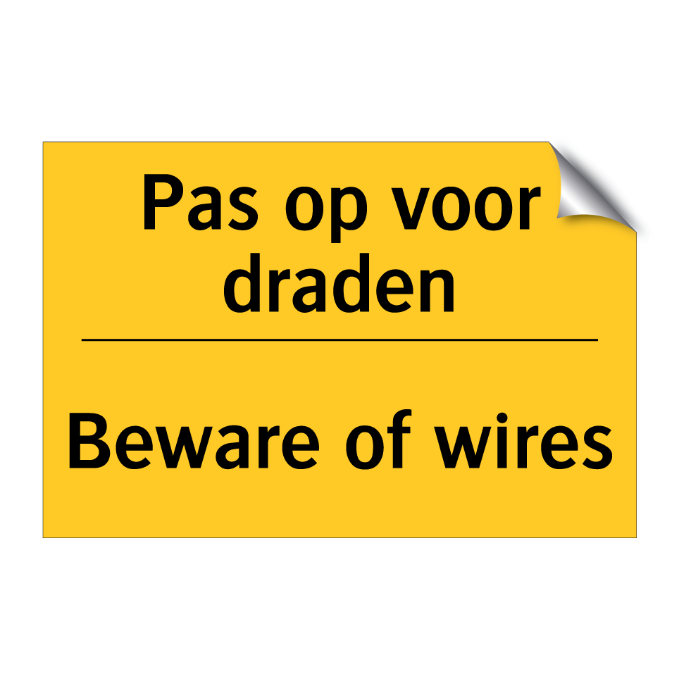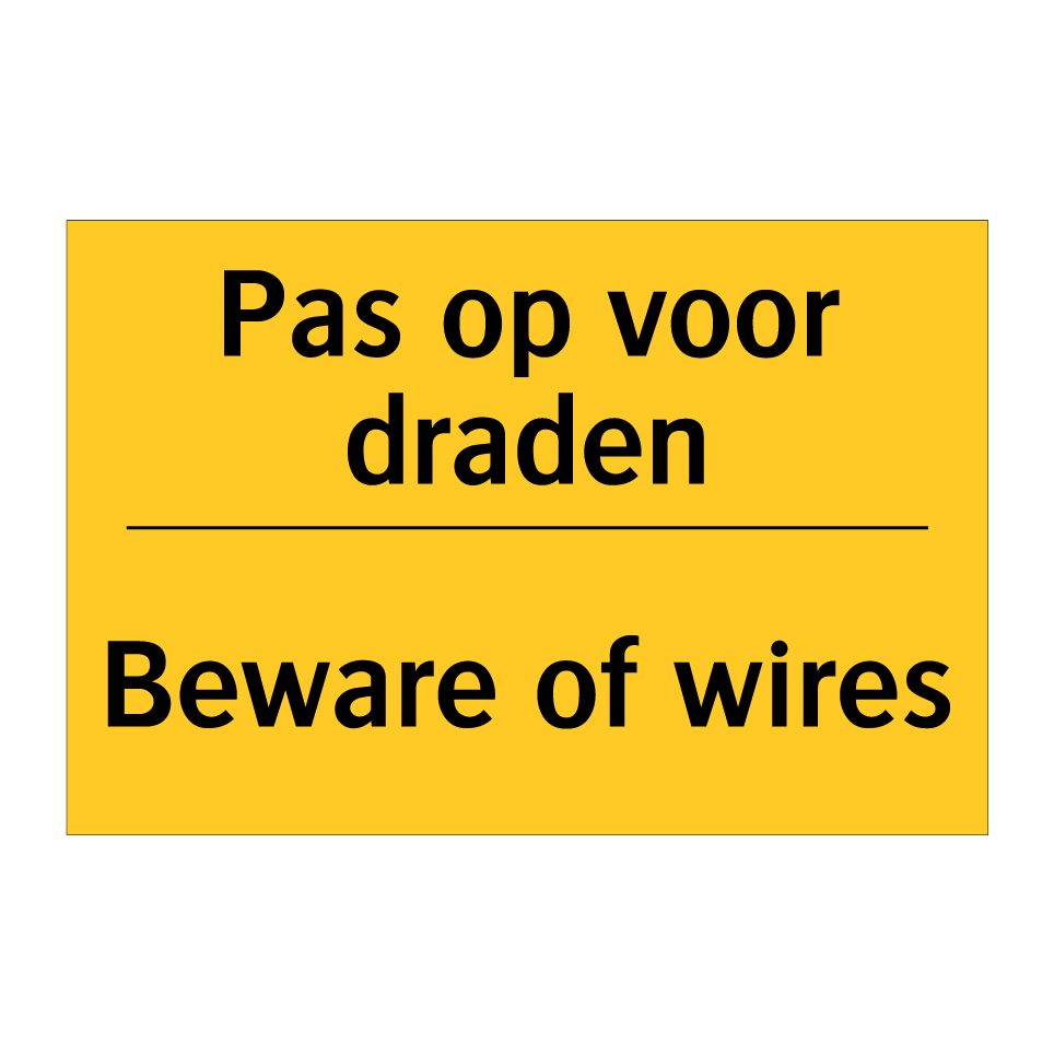 Waarschuwingsbord met de tekst Pas op voor draden / Beware of wires