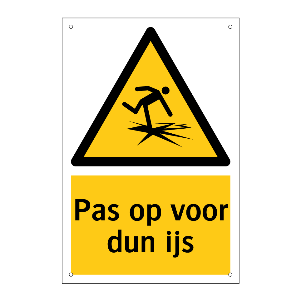 Deze waarschuwingsbord is essentieel voor het waarborgen van de veiligheid in gebieden waar dun ijs een risico vormt. Plaats deze bord bij vijvers, meren, kanalen of andere wateroppervlakken die in de winter bevriezen. Het waarschuwt voorbijgangers en schaatsers voor het gevaar van instorten door zwak ijs. Ideaal voor gebruik in parken, recreatiegebieden en privéterreinen. Door deze duidelijke waarschuwing te plaatsen, helpt u ongelukken te voorkomen en de veiligheid van iedereen te waarborgen. Dit waarschuwingsbord is een onmisbaar hulpmiddel voor elke locatie waar ijsvorming een potentieel gevaar kan zijn.