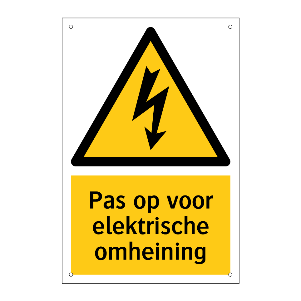 Waarschuwingsbord met de tekst Pas op voor elektrische omheining