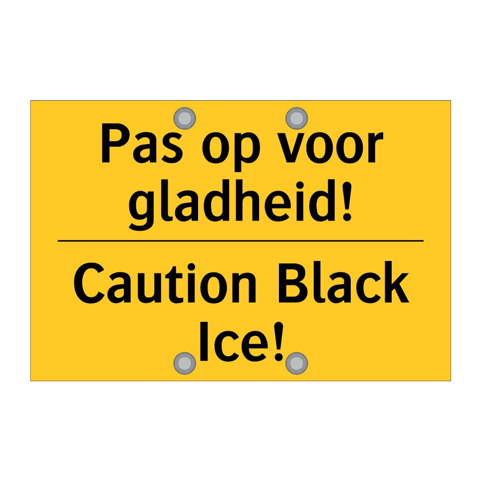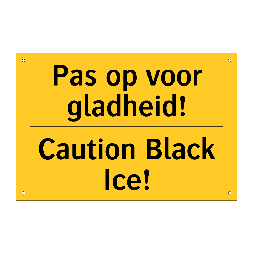 Waarschuwingsbord met de tekst Pas op voor gladheid! / Caution Black Ice!