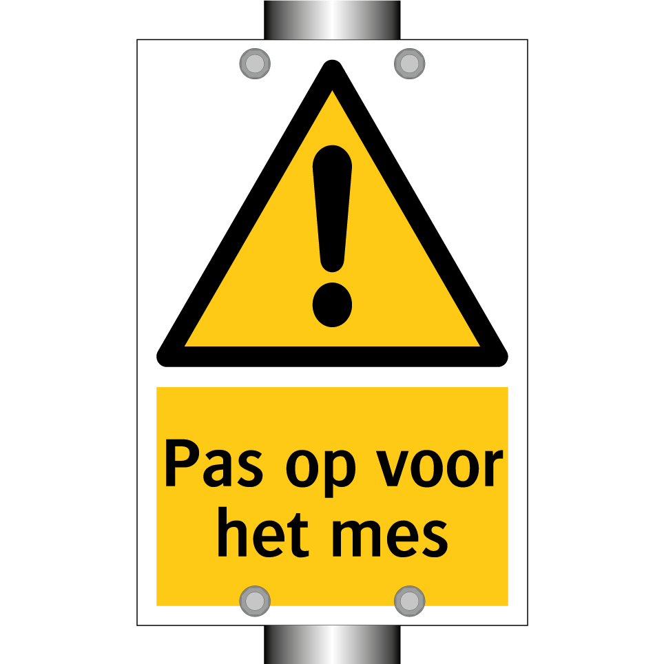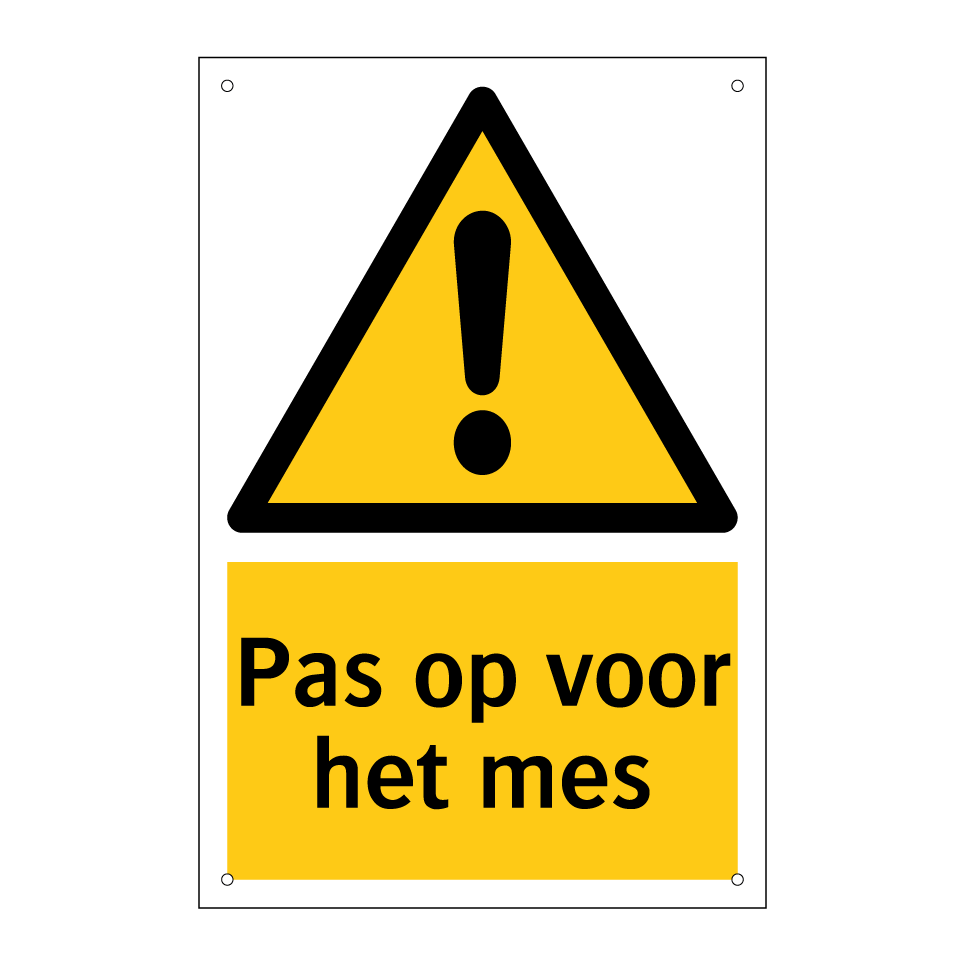 Waarschuwingsbord met de tekst Pas op voor het mes