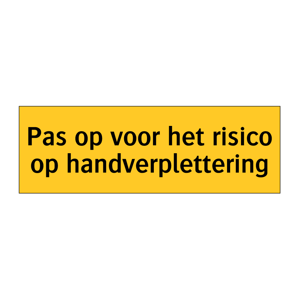 Waarschuwingsbord met de tekst Pas op voor het risico op handverplettering