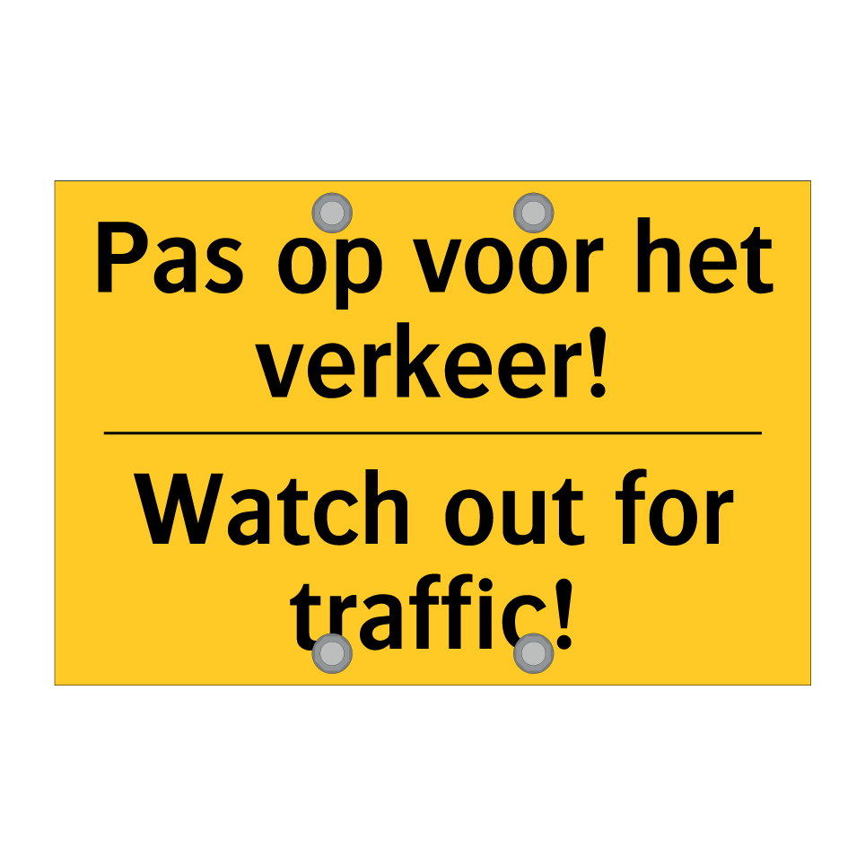 Waarschuwingsbord met de tekst Pas op voor het verkeer! / Watch out for traffic!