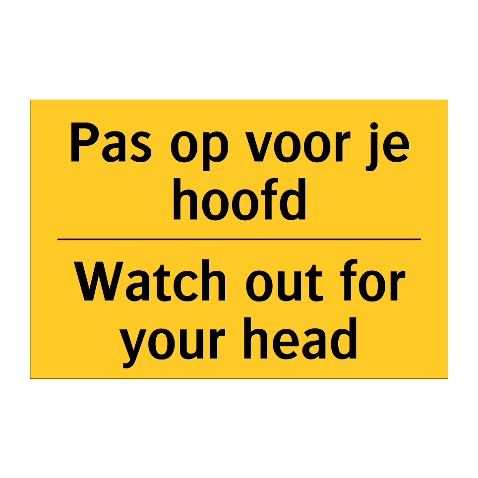 Waarschuwingsbord met de tekst Pas op voor je hoofd / Watch out for your head