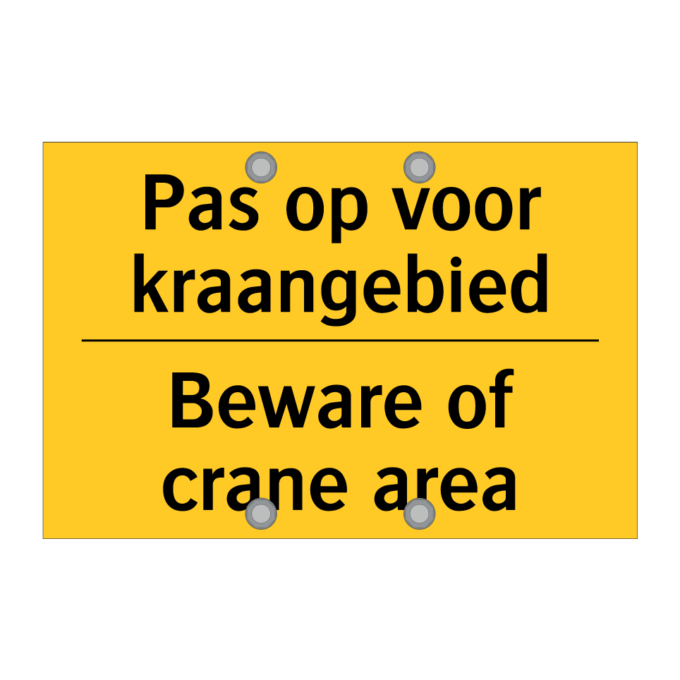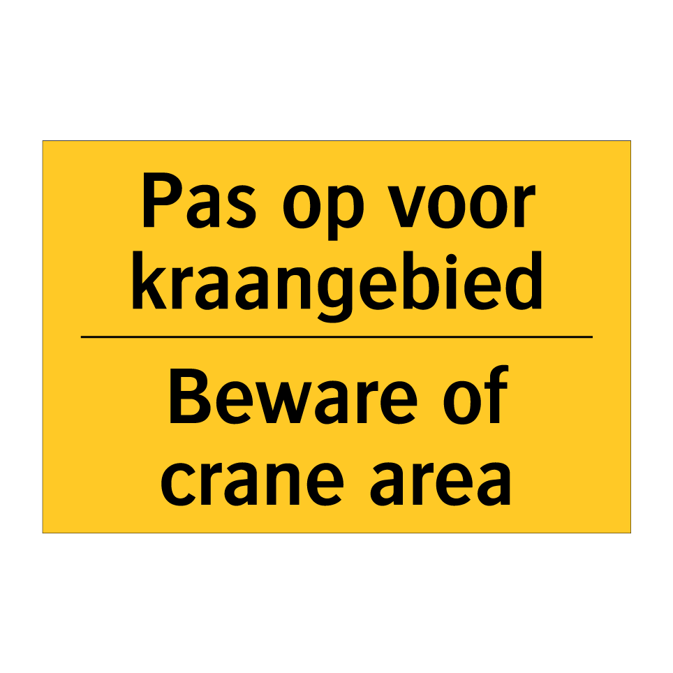 Waarschuwingsbord met de tekst Pas op voor kraangebied / Beware of crane area