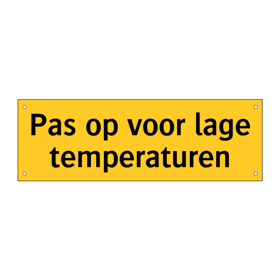 Waarschuwingsbord met de tekst Pas op voor lage temperaturen