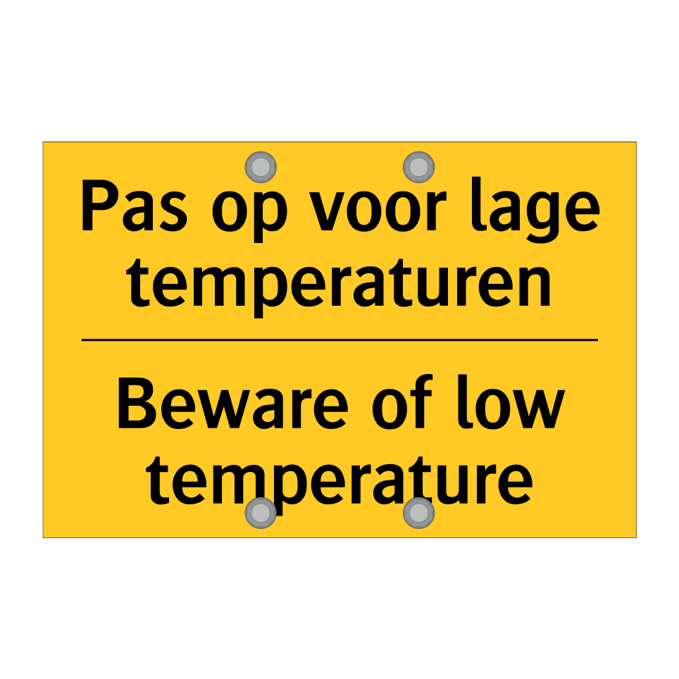 Waarschuwingsbord met de tekst Pas op voor lage temperaturen / Beware of low temperature