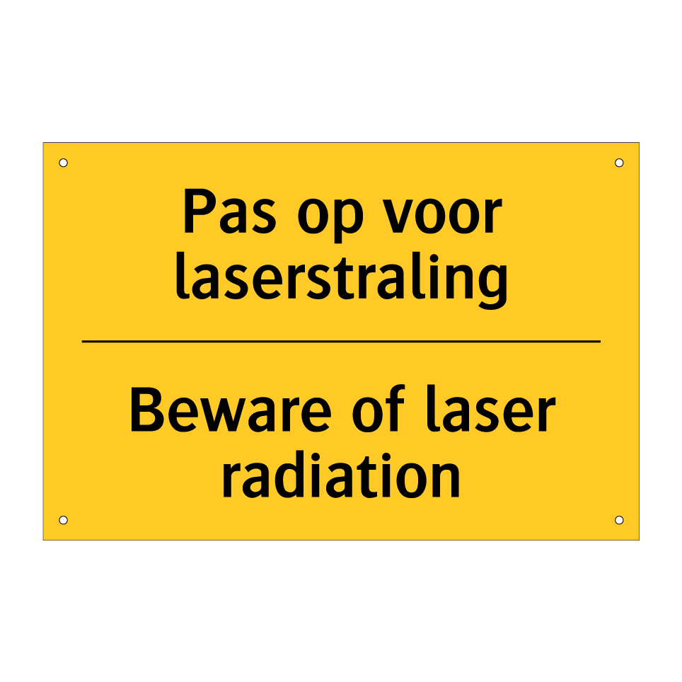 Waarschuwingsbord met de tekst Pas op voor laserstraling / Beware of laser radiation