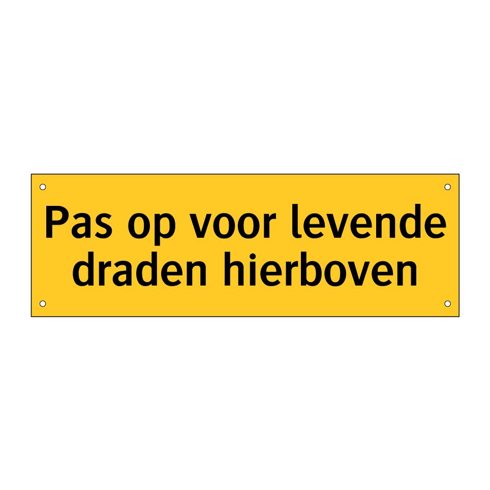 Waarschuwingsbord met de tekst Pas op voor levende draden hierboven